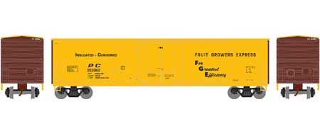 Fruit Growers Express not only owned a large fleet of insulated boxcars they also built many 50’ boxcars and other equipment as well. FGE was owned by a group of ten railroads, with Atlantic Coast Line and Southern being two of the largest original owners. Many of FGE cars were built at its Jacksonville Shops, including these 50’ smooth-side insulated boxcars.