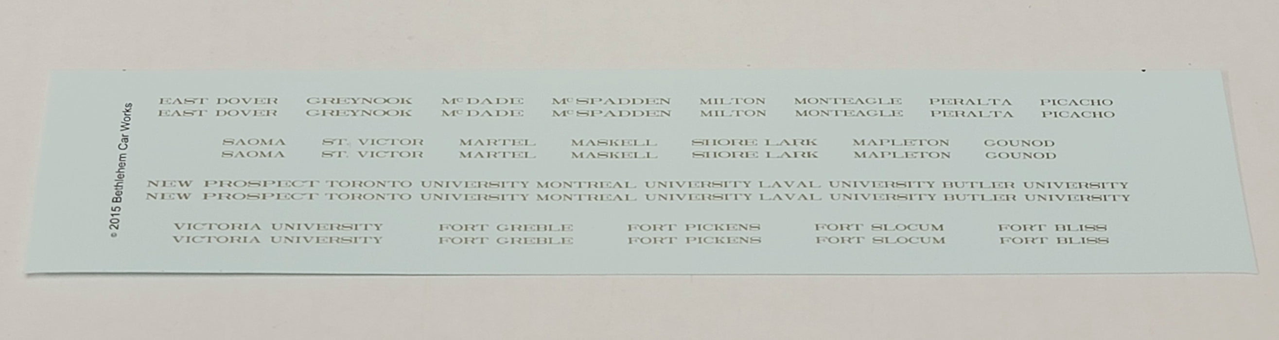 Bethlehem Car Works 524 HO Scale Names for B&M Pullmans - Bronze Gold Decals