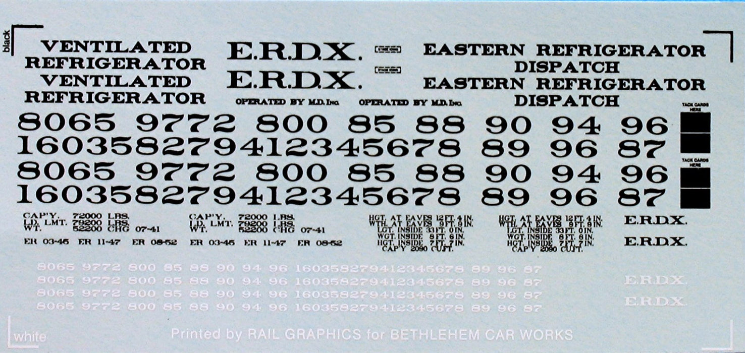 Bethlehem Car Works KitBits 255 HO Scale Black ERDX Reefer Car Decals