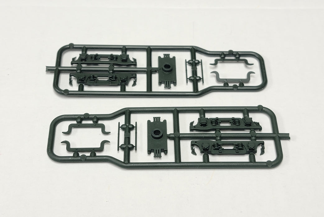 1 Pair of Green HO Scale REA Express Reefer Trucks in kit form. Includes axle caps/bearings. Does not include wheelsets, 33" are recommended.
