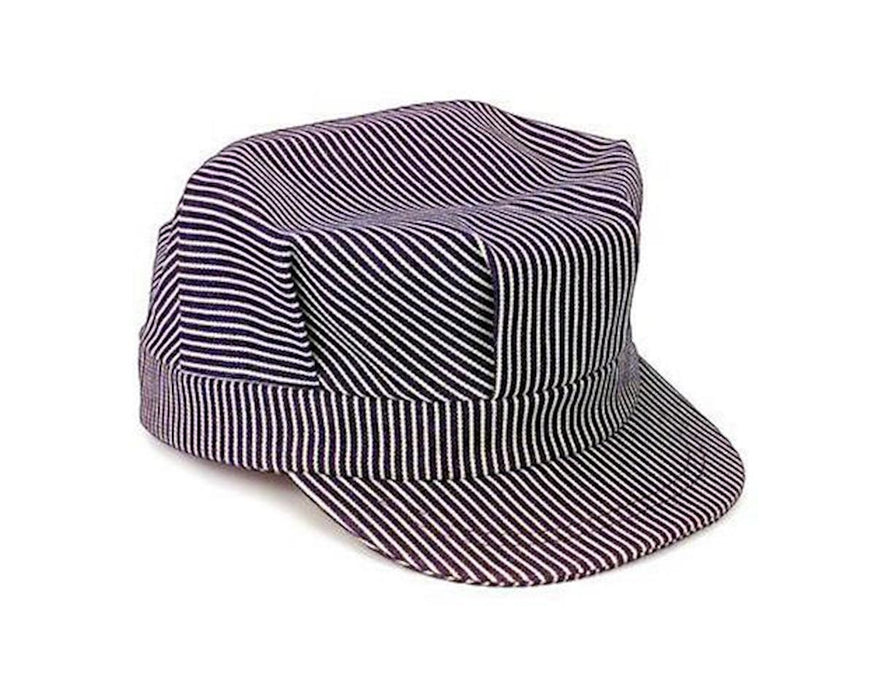The finest engineer hats on the market! Heavy, hickory striped denim in blue.