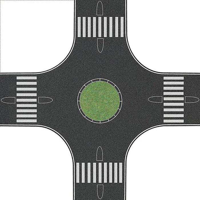 Easily install highways on your N Scale layout! 4-Way Roundabout Intersection 6-3/8 x 6-3/8in. (16 x 16cm).