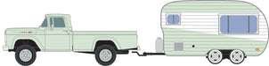 Classic Metal Works 40016 HO Scale 1960 Ford Pickup with 1950's Camper Adriatic Green & White