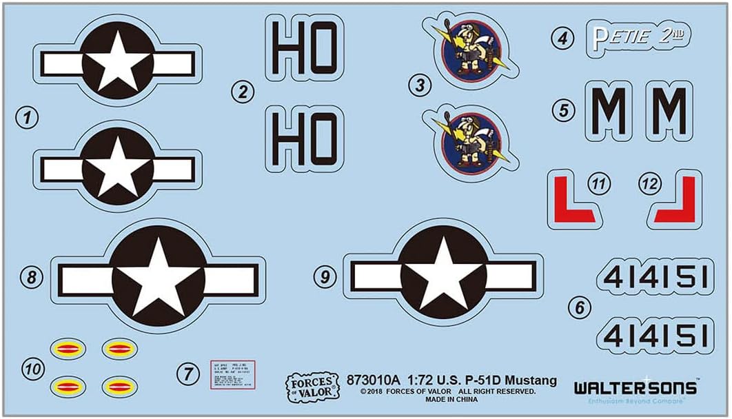Forces of Valor 873010A 1/72 US P51d Mustang Plastic Model Airplane Kit
