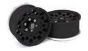 This is a pair of Officially Licensed aluminum Incision KMC 1.9 XD129 holeshot black anodized beadlock wheels by Vanquish.