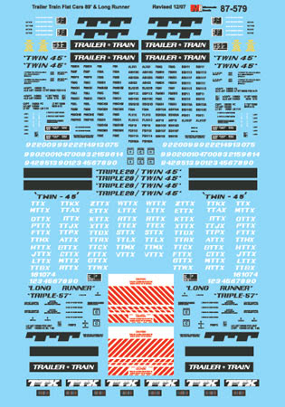 Waterslide Decal HO Scale Trailer Train 89' Flats and Long Runner Flats.