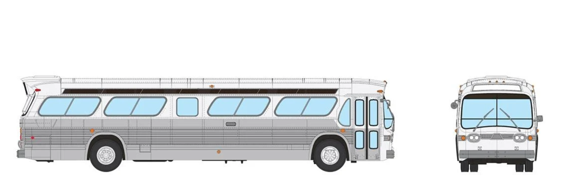 Every model comes with incredible detail not seen in any other bus model below 1:24 scale. That includes full and accurate underbody; correct tubular body profile (3D scanned from the real thing); zillions of rivets; separately-applied details; multi-color interior; working interior lights, headlights and destination sign lights; positionable front wheels; and more! This is not your father's bus model.