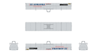 - Highly-detailed ASF Family of Trucks (FOT) 100-ton trucks with finely rendered raised foundry data; rotating black Timken three-sided bearing caps; separate “truck-mounted brake” brake beams; and side bearing detail