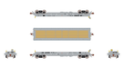 - Highly-detailed ASF Family of Trucks (FOT) 100-ton trucks with finely rendered raised foundry data; rotating black Timken three-sided bearing caps; separate “truck-mounted brake” brake beams; and side bearing detail