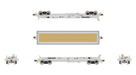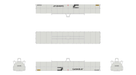 • Highly-detailed ASF Family of Trucks (FOT) 100-ton trucks with finely rendered raised foundry data; rotating blue Timken three-sided bearing caps; separate “truck-mounted brake” brake beams; and side bearing detail