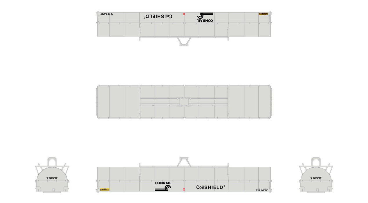 The all-new Rivet Counter™ HO Scale Thrall-Trinity Manufacturing 42’ Coil Steel Car is the definitive model of this unique freight car. True to the prototype, the car features railroad, road number, and era-specific™ features like 3 body types; 6 removable hood types; 4 positionable load dividers; coil steel loads with metal weight inside each; a finely detailed body with dual trough design and center divider; plus simulated wood trough interior. Depending on the type of steel you’re hauling, the car can be used without hoods as well.