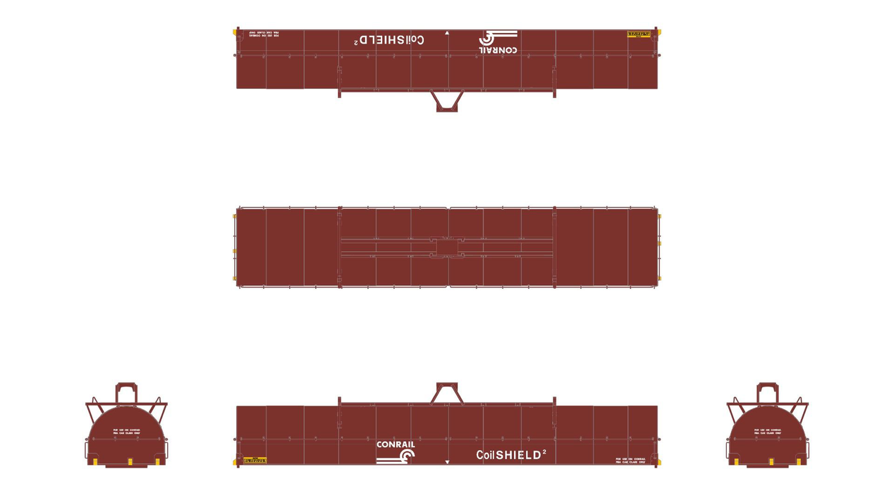 The all-new Rivet Counter™ HO Scale Thrall-Trinity Manufacturing 42’ Coil Steel Car is the definitive model of this unique freight car. True to the prototype, the car features railroad, road number, and era-specific™ features like 3 body types; 6 removable hood types; 4 positionable load dividers; coil steel loads with metal weight inside each; a finely detailed body with dual trough design and center divider; plus simulated wood trough interior. Depending on the type of steel you’re hauling, the car can be used without hoods as well.