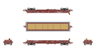 - Highly-detailed ASF Family of Trucks (FOT) 100-ton trucks with finely rendered raised foundry data; rotating Black Timken three-sided bearing caps; separate “truck-mounted brake” brake beams; and side bearing detail