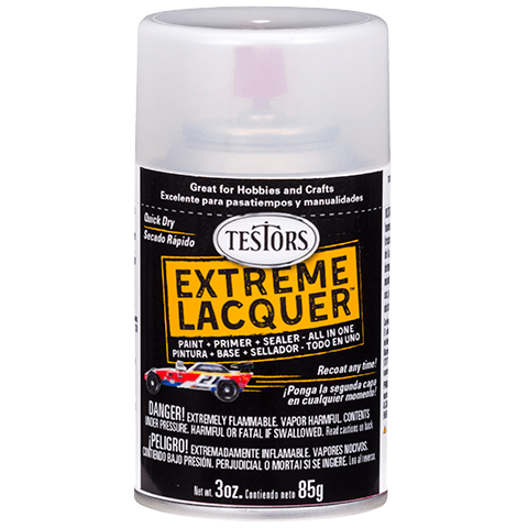 Full line of aerosol lacquers whose fast dry time and elimination of priming & sealing save the modeler or crafter time.