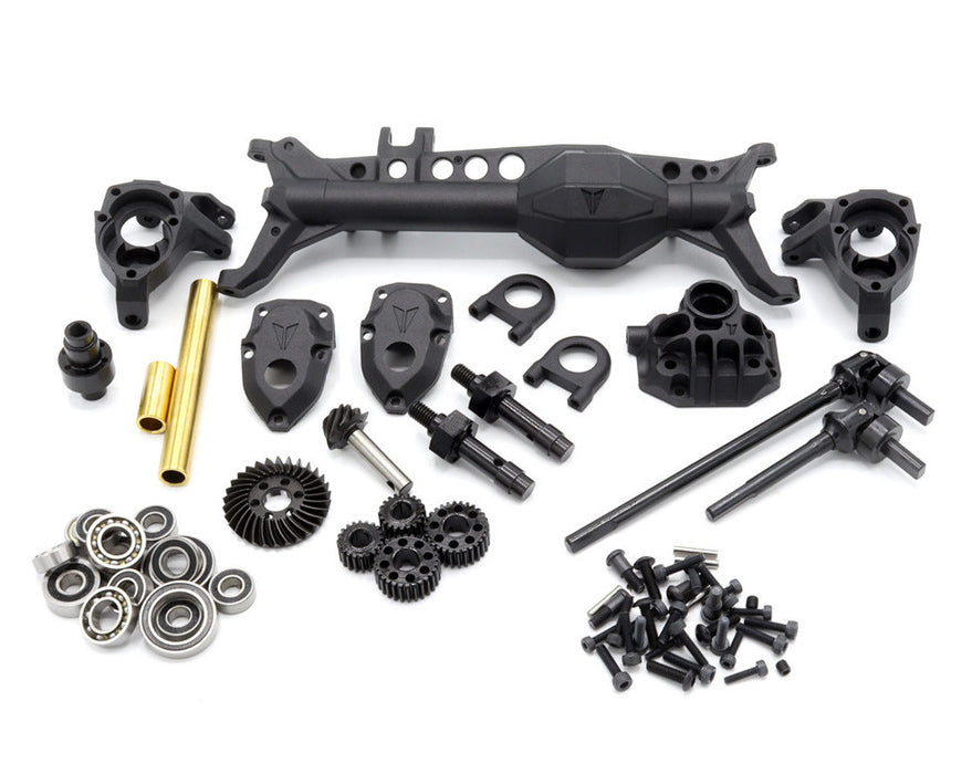 The F10 Plastic Molded Portal axles benefit from Vanquish Product’s years of design experience in making the industry’s best aluminum axles. The plastic molded F10 Portal axles feature an ultra rigid design with an integrated truss that ties both ends of the axle together, as well as brass inner reinforcement tubes to add more strength and provide some weight down low to the vehicle.