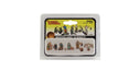 One man sweeps debris, while another fills buckets at the tar tank. One balances tar buckets on his shoulders. One man has loaded his mop with tar and is pulling it out of the bucket, while another takes a quick break from mopping, and leans, exhausted, on his mop. Set contains 8 pieces. Colors may vary from actual product.