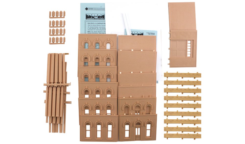 Add authenticity and realism to your O Scale or O Gauge layout with these highly detailed, easy to assemble DPM building kits from Woodland Scenics. Modular parts are made of injection molded styrene plastic and the kits include roof, clear window material and complete instructions. Packages include pilasters, door, windows and clear window material where needed. All sections are the same color. Photo shows a completed and painted kit.
