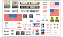 This two-story brick-patterned courthouse is a highly detailed, stately representation of American courthouses that stand at the center of every county seat. Features include chimneys and full roof detail, drainage, propane tank, figures, cannon, flagpole and Old Glory.