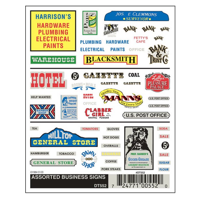 Woodland Scenics DT552 Dry Transfer Decals - Assorted Business Signs