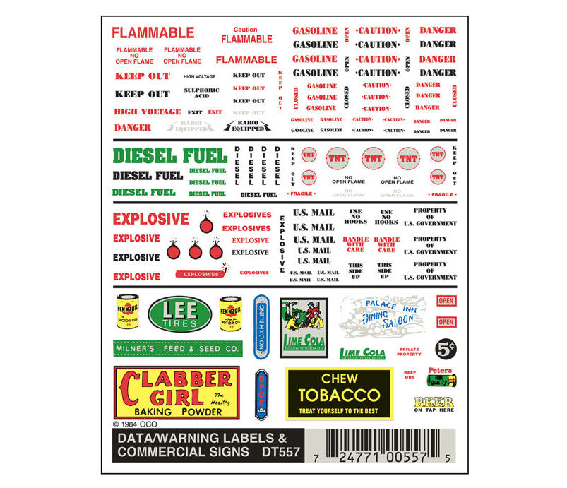 Woodland Scenics DT557 Dry Transfer Decals - Data Warning Label and Commercial Signs