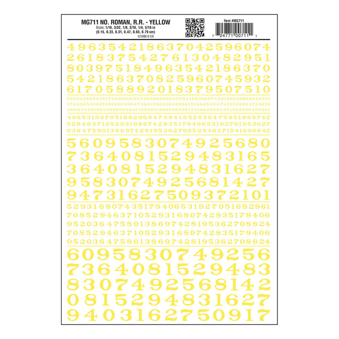 Woodland Scenics MG711 Model Graphics, Roman Numbers, Yellow