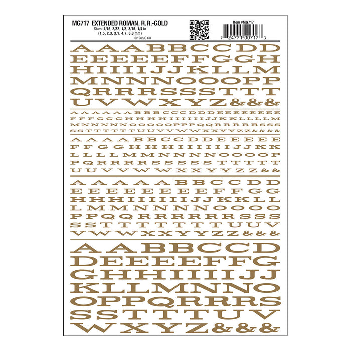 Woodland Scenics MG717 Model Graphics, Extended Roman Letters, Gold