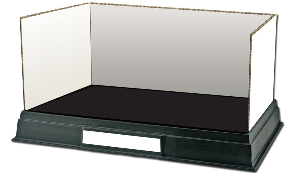 The perfect foundation for your diorama or display. The Backdrop fits snuggly into the grooves on the molded, black base and provides a durable backdrop. Cut to any shape and paint, decorate, label, etc.